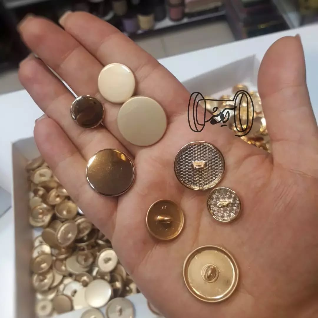 در ۴ سایز و گ طلایی ، طلایی مات ، نقره ایی ، نقره ایی مات ، دودی ، دودی مات و مشکی مناسب برای شومیز ، مانتو و پالتو